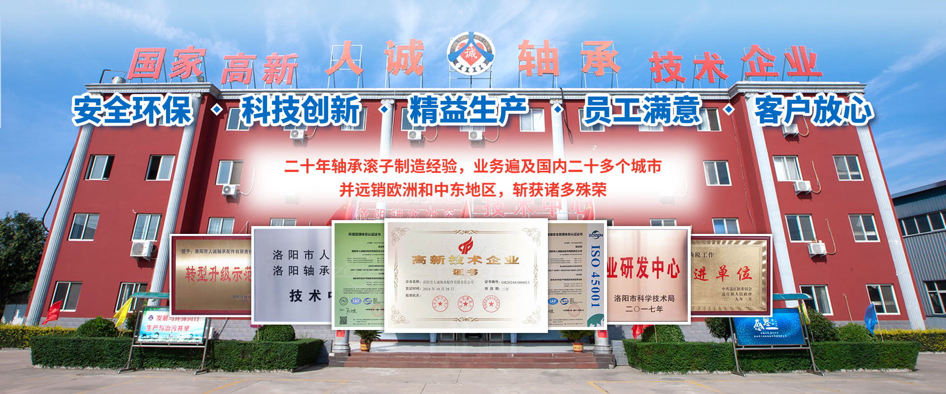 •   洛陽市人誠軸承配件有限責任公司成立于2003年,2015年由洛陽搬遷至孟津循環經濟區送莊鎮梁新路,占地60畝,建筑面積20000余平方米。公司專注生產高精圓錐軸承滾子,可根據客戶需求研發及來樣加工,年產精品滾子4億粒。  我們始終堅持“安全環保、科技創新、精益生產、員工滿意、客戶放心”的經營理念。先后與河南科技大學、洛陽師范學院、方智測控合作,并與國家洛陽軸承研究所聯合成立“技術中心”,建立了良好的產學研合作機制,為公司的創新發展打下了堅實的基礎。  2018年公司被認定為國家高新 技術企業,通過了IATF16949:2016質量管理體系、環境管理體系、職業健康安全管理體系、知識產權管理體系等多項認證。擁有完善的檢測手段,先進的工藝,穩定的設備,優良的服務。公司董事長葉會卿為洛陽市工商聯副主席,洛陽市軸承滾子行業協會會長,法人李愛芳女士從事軸承滾子制造30余年,積累了豐富的生產管理經驗,誠實守信、務實、合作、共贏的作風深受業界好評。